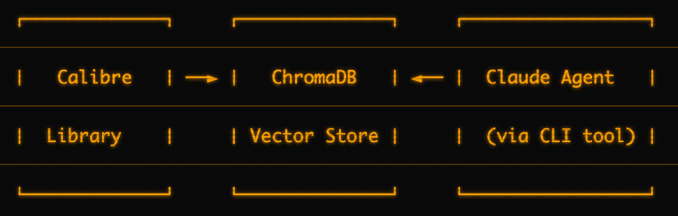 “I need a CLI tool that can read my Calibre library, extract text from EPUBs and PDFs, chunk them into ~500 word passages, and store them in ChromaDB with metadata about the source book.”