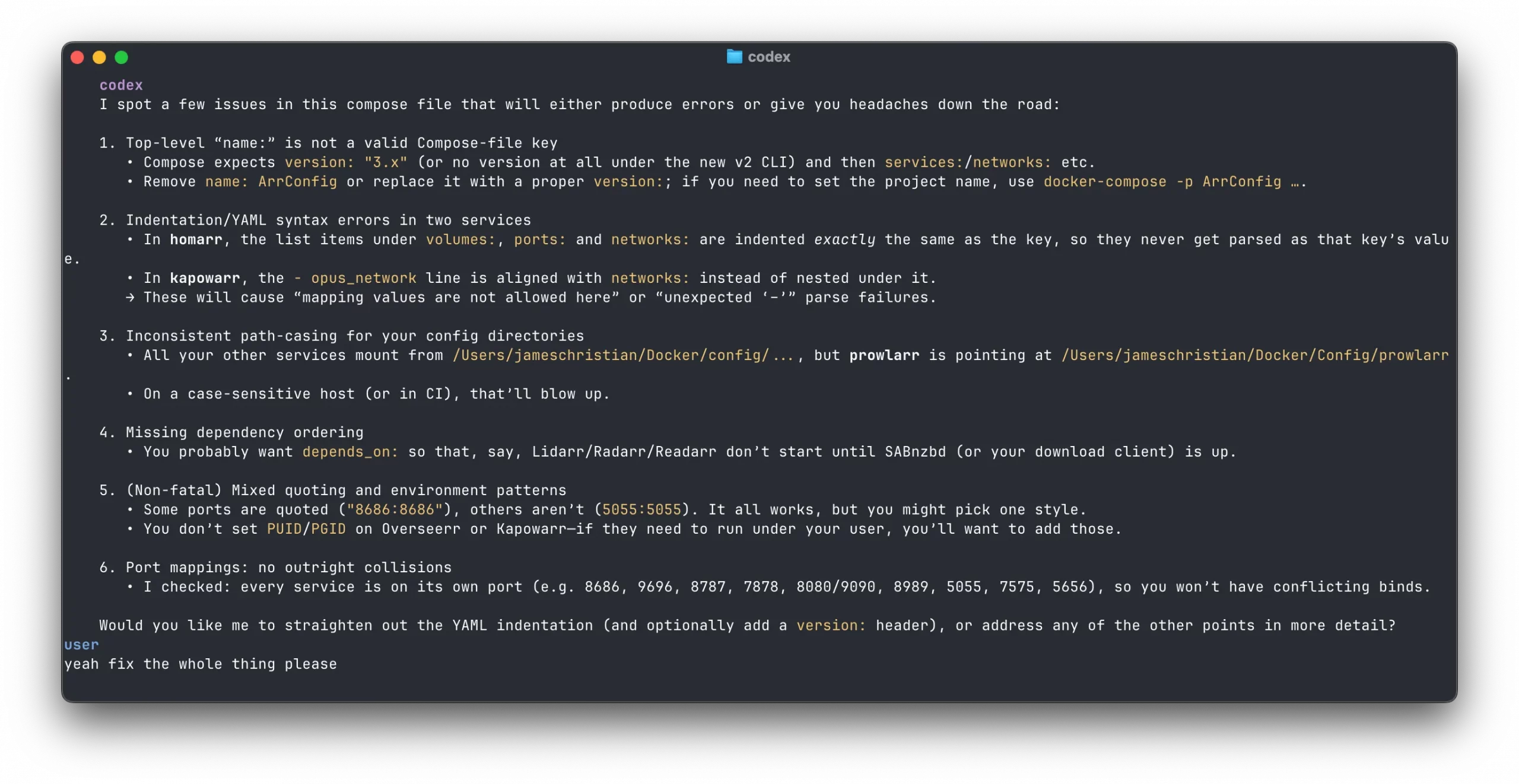 TL;DR: OpenAI’s Codex CLI is a lightweight, open-source coding agent that runs directly in your terminal. I used it to analyze and fix my local media server configuration with simple natural language commands. It saved me hours of manual debugging and editing.